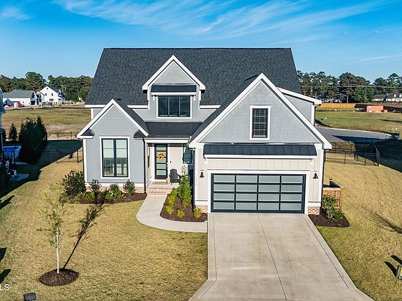 NEW AMAZING PRICE! Welcome to this beautifully crafted, nearly-new home in the sought-after Waterstone community, where luxury meets tranquility. This meticulously-maintained coastal ''Farmhouse,'' built by Hardison Building, combines modern luxury and timeless design. This pristine home sits on one of the largest lots in the neighborhood in an ideal location - right at the end of a quiet cul-de-sac. It offers over 3100 square feet of exceptional finishes and thoughtfully designed living space, including 4 bedrooms, a large bonus/5th bedroom, and 4 full bathrooms. The open, welcoming layout features vaulted ceilings, beautiful exposed beams, and natural gas fireplace in the living room. The gourmet kitchen is a chef's dream, with quartz countertops, natural gas range, built-in drawer microwave, French door refrigerator, and huge walk-in pantry. Enjoy the comfort of a first-floor master suite, which opens to a beautiful shiplap-accented sunroom. The luxurious master bath is complete with zero-entry tiled walk-in shower and sliding barn door. A tankless water heater ensures efficiency and endless hot water. Step outside to the cozy screened porch overlooking a fabulous, spacious backyard - perfect for relaxing, entertaining, or adding your own private in-ground pool. Waterstone is known for its top-tier amenities and active social community: a day dock with water access to Pages Creek, kayak/paddleboard storage, beautiful community pool and clubhouse, pickle ball courts, 1.5 miles of walking trails, and community areas and fire pits. With no city taxes, this stunning home truly couldn't get any better. PRICED WELL UNDER APPRAISED VALUE!