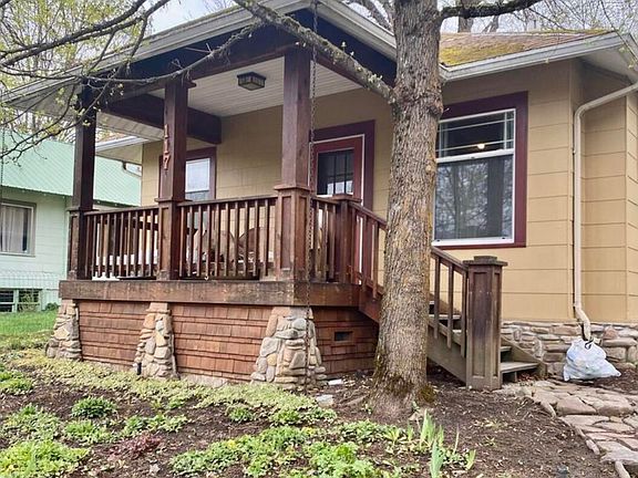 Well-maintained home in uptown Kellogg. Electric fireplace, sunny kitchen and main floor laundry. Original molding and trim adds charm. Mission Style porch added in 2006. Incredible landscaping comes to life each spring. Large backyard with room to add on, expand the detached garage or add a hot tub. New sewer lateral in 2019. New sump pump in 2021. No Flood Zone. Stunning mountain views all around. Kellogg is at the base of Silver Mountain Resort and only 20 minutes to Lookout Pass Ski Resort.