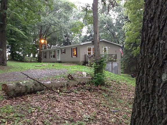 Private Setting! Three bedroom doublewide situated on 1.90 acres on end of No Outlet Road. Home features spacious eat-in kitchen and master bedroom complete with walk-in closet & large bathroom with garden tub and shower. The partial basement with concrete flooring is accessible from outside & could possibly be converted into a single stall garage. Furnace is just a few years old. Property is an Estate and is being sold in "As Is Condition".