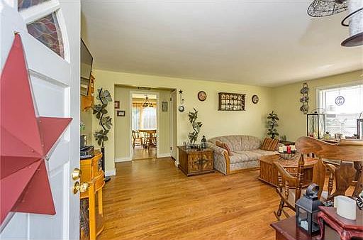Make this cozy 2 bedroom and 1 bathroom ranch style home yours!! Hardwood floors in living room and bedrooms. Formal living room. Eat-in-kitchen with sliding doors to back yard. Full basement that has the potential to be turned into additional living space. Walk-up attic offering plenty of extra storage.