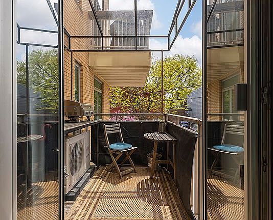 Spacious and sunlit one-bedroom is now available in the heart of Williamsburg. This apartment features vaulted ceilings with dual exposures facing South and West. The open kitchen offers a breakfast bar with granite countertops, stainless steel appliances, and ample cabinet storage. Residents can enjoy their own 36 square-foot terrace, which is perfect to relax and enjoy dinner with friends. The bathroom is meticulously renovated with high-end finishes including Carrera marble floors, a custom cut Carrera marble countertop, oversized linen closet, and soaking tub. There is also a vented washer and dryer in unit. 117 Kingsland Ave is situated near McCarren and the beautiful McGolrick Park, which is known for being low-key, dog-friendly, and filled with large older trees that provide plenty of shade during the summer. Browse the Sunday farmer's market, let your dog have a place to run, or head over to the gated play area offering swings, spray showers, and creative climbing structures to kids of all ages, as well as plenty of seating. Cafes and restaurants are minutes from your doorstep including One Stop Bar across the street, which serves a long list of beers and food until 2 AM. You're also two blocks from Brooklyn Steel, a massive music venue, and Ringolevio, a chill Italian restaurant and jazz bar with cocktail lounge in the back. 117 Kingsland Ave is in close proximity to transportation, with easy access to the BQE, L and G trains. Residents are a quick walk away from Graham Ave, and just a stone’s throw from Greenpoint.