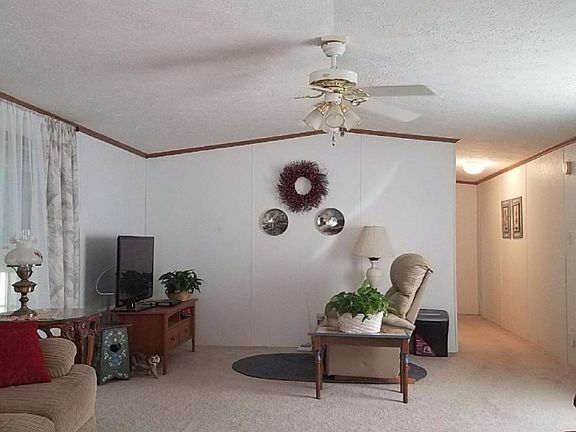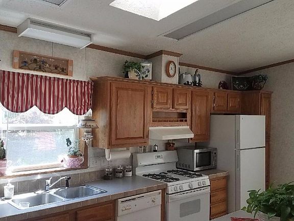 OPEN FLOOR PLAN WITH THE KITCHEN AT THE FRONT OF THE MOBILE HOME. THE KITCHEN HOSTS AN ISLAND WITH ELECTRIC, PLENTY OF CUPBOARDS, AND A SKYLIGHT. ALL APPLIANCES ARE GE, REFRIGERATOR, STOVE, DISHWASHER, and WASHER & DRYER. IN THE MASTER BEDROOM IS A WALK IN CLOSET AND WALK IN SHOWER. THE WATER SOFTENER HOOK UP IS IN THE MASTER BEDROOM CLOSET. THE GARAGE IS A 1 3/4 WITH A WORKBENCH AND STORAGE AREAS. WINDOW BLINDS AND CURTAINS STAY, BUT SHEERS DO NOT. ENJOY THE WILDLIFE AS THEY COME FEED IN THE FIELD BEHIND YOU. DEER, TURKEY, GEESE, ETC. MOBILE HOME TAX IS $87.55 WITH A SENIOR DISCOUNT AND THE GARAGE TAX IS $141.06. LOT RENT IS $265.00 A MONTH, PLUS $10.00 EACH ADDITIONAL PERSONS. BUYERS MUST BE APPROVED BY KNOLLWOOD MOBILE HOME PARK MANAGEMENT. DIRECTIONS: LEFT ON TANGLEWOOD, LEFT ON KNOLLWOOD.