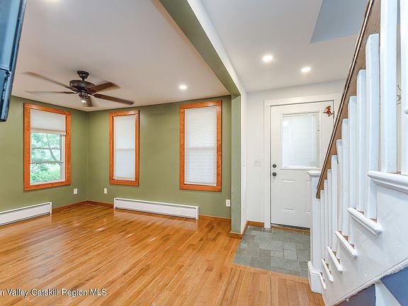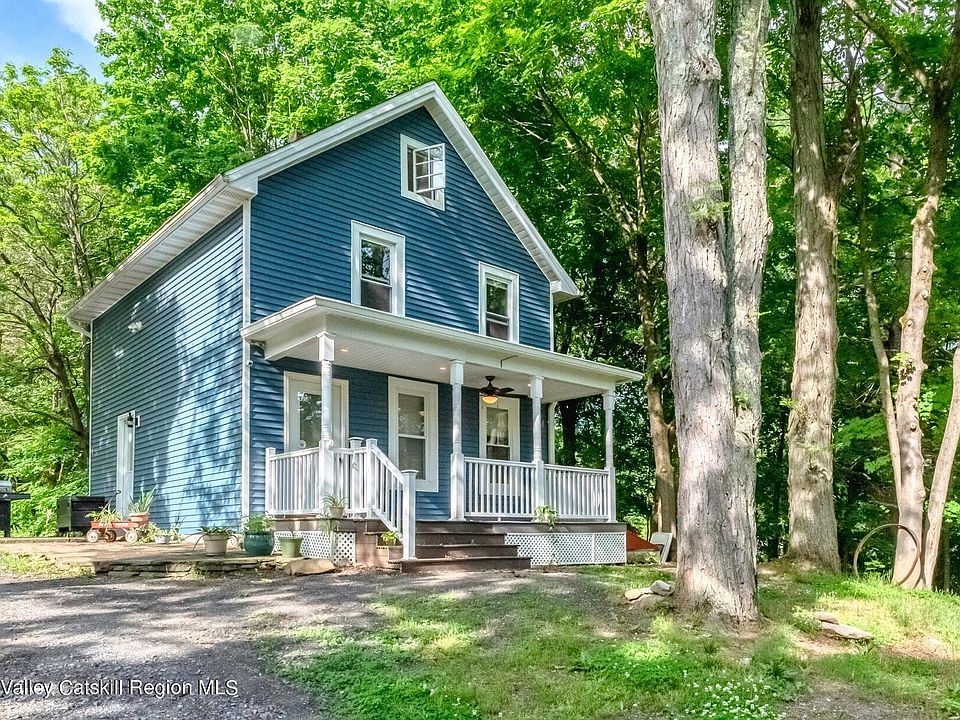 Welcome to 117 Lake Road in the charming community of Lake Katrine. This delightful 2-3 bedroom home sits on over 3 acres of picturesque land, featuring a cozy rocking chair front porch that overlooks a beautifully landscaped yard with natural rock outcroppings and mature trees defining the property boundaries. Step inside to an inviting open floor plan that seamlessly connects the living room, dining area, and kitchen. The upstairs boasts a versatile layout, offering numerous possibilities to suit your needs. The full bathroom includes a convenient shower/tub combo and an in-unit washer and dryer, eliminating the need for trips up and down the stairs. The primary bedroom features a staircase leading to the attic, an ideal space for a meditation room or office. Additionally, there are two more rooms, one of which has been used as a bedroom despite not having a closet. This home has been thoughtfully updated from top to bottom, including electrical and plumbing systems, drywall, appliances, and kitchen cabinets. It's a must-see to fully appreciate all it has to offer. Don't miss the opportunity to make this charming home your own.