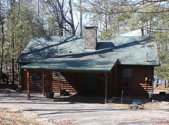 LEVEL Lakefront on Wallenpaupack with panoramic views and gorgeous SUNSETS ! ''Gumble'' log ranch featuring master suite plus 2 additional bedrooms, full bath with Jacuzzi, bay window in LR, Multiple built ins including wine refrigerator, living room w/ stone Fireplace for chilly evenings, modern kitchen, open floor plan, large covered country porch on lakeside and second floorhas great potential to finish as a bunk house or add a dormer and make a bedroom suite. Includes a whole house generator, new gutters, recently painted exterior, car port, and a newer roof. Enjoy your own dock and park like setting on the BIG LAKE. Only 2 hours form NYC and 2.5 from PHILLY and conveniently located in NE, Pa. in the Poconos.