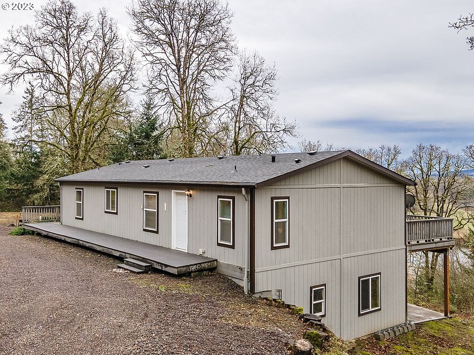 Closed in 1.45 acre Columbia River view manufacture home with full unfinished basement. 3 bed 2 bath with full length wraparound Trex deck. Vaulted ceiling, island, and master bedroom with views and soaking tub. New roof and exterior paint in 2018, new kitchen and bathroom floors, interior paint, trim, lighting, kitchen sink and faucets in December 2022. Plenty of room to build a shop, and park RV. All appliances stay.