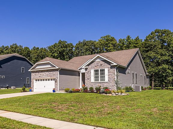 Welcome to 117 Laquinta Drive. Located in the newly developed section of Harbor Pines. This 3 Bed/2.5 Bath home has front and back of views of Harbor Pines Golf Course. This beautiful DR Horton home is 2 years old and is just as beautiful on the inside as it is on the outside. The master suite has a spacious sized room with a walk-in closet and a beautifully designed bathroom. The additional two bedrooms are located on the opposite side of this single-story home and share a full bathroom. A half bath is located near the front door and main living space of the home. The expansive open floor plan effortlessly connects the living, dining, and kitchen areas, creating a spacious environment ideal for gatherings. The gourmet kitchen offers plenty of counter space, upgraded kitchen appliances including a double wall oven and an oversized island overlooking the dining area and living room. The extended back deck allows for admiring views of the 17th hole of the golf course. An attached garage and additional upgraded unfinished basement allows for ample room for storage. Don’t miss your chance to call this stunning single family home yours!