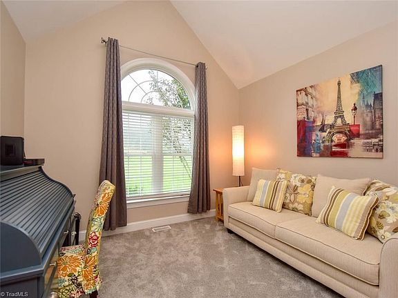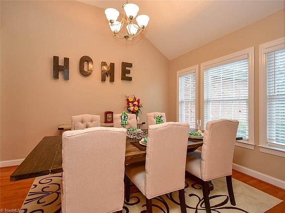 A lovingly maintained FRANK BETZ plan - single lvl home situated on an oversize lot with a full basement. NEW carpet in bedrooms, wood floors throughout living areas, UPDATED kitchen with quartz counter tops, subway tile back splash and SS appliances. Vaulted ceilings and open layout. Basement boasts a built-in bar, pool table area, movie room and more. HUGE deck and LL patio for entertaining and the expansive yard is great for your four legged family members! A quick commute to Greensboro or Belews Lake!