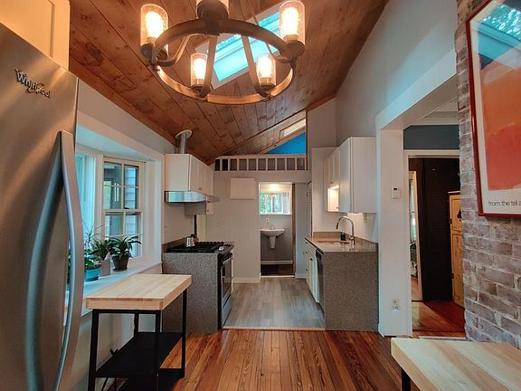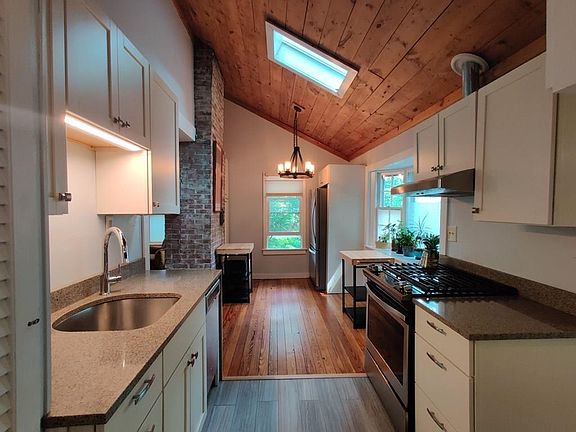 Charming cottage nestled among the trees and set unto itself in a quiet area of desirable Laurel Park. Enjoy 20+ acres of hiking and biking trails as you walk Fido to their hearts content while you enjoy the natural beauty of this preserved land. Inside you will love the character of this home...the warmth of the original pine hardwood floors, the kids loft above the kitchen, the barn doors. At the same time, the newly remodeled kitchen and bathroom is fabulous, complete with newer plumbing and electrical updates. The open and airy kitchen has vaulted ceilings and a skylight, beautiful quartz countertops & stainless steel appliances...Gas stove, dishwasher & refrigerator, all remaining for your enjoyment. This adorable cottage is ready for you to move in and enjoy cozying up to the fireplace in the winter as you watch the grounds people take care of the majority of the snow removal. Even the roof & furnace are newer, so there's nothing left to do but say YES, please! Open Sat 11-1