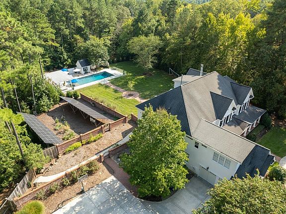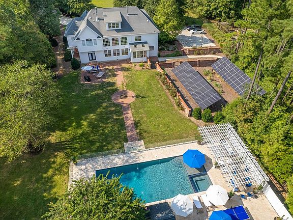 Spectacular Private Estate on almost 17 acres in Chapel Hill. This home has it all! Geothermal System, Solar panels & a Tesla Powerwall battery backup; Glass fenced heated pool with cool touch Travertine tile & pergola, Fenced Garden with raised beds & irrigation system; Redone Kitchen with new Quartz countertops; Exercise Room; Movie Theater; Music Room; Master Suite with Private Living Room; Bonus Room with private kitchenette & full bath; Whole house painted inside & out. Truly one-of-a-kind masterpiece, tucked away yet less than 10 minutes from UNC.