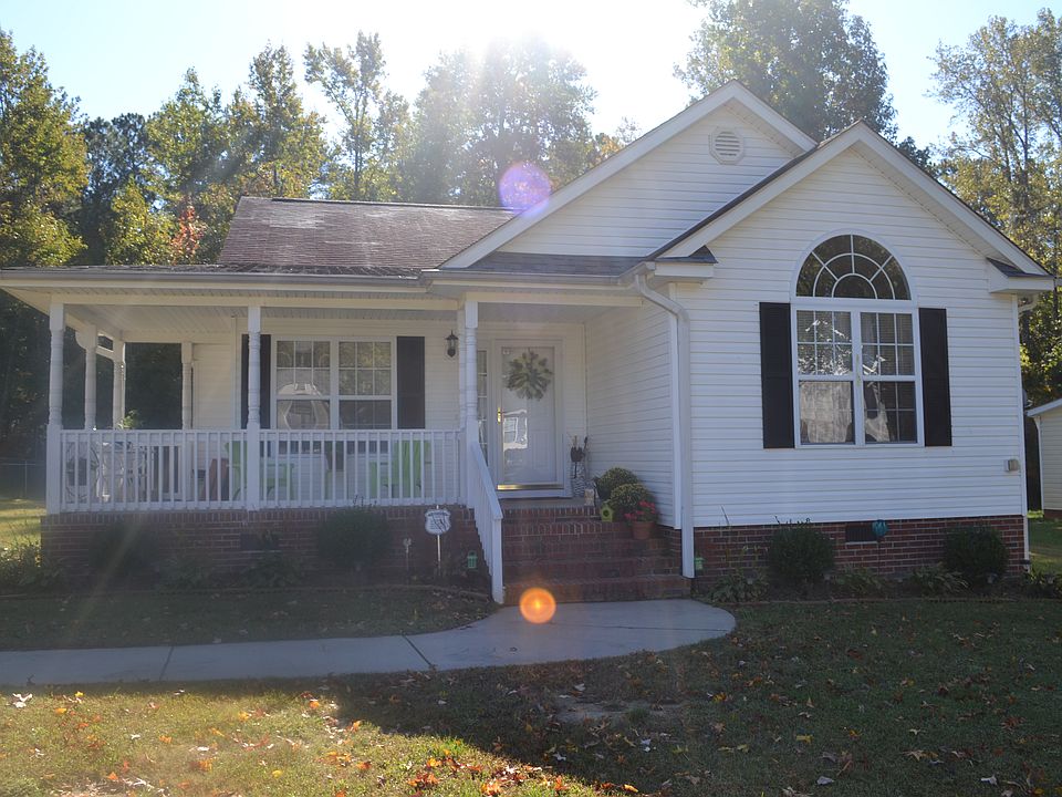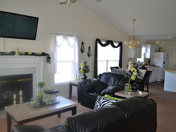 Rocking Chair Front Porch for Relaxing! Lovely 3 bedroom, 2 bath home. Master bedroom with walk-in closet and double vanity sink. Open floor plan for living/dining with cathedral ceiling and gas log fireplace. Self-Cleaning Oven, Refrigerator with Ice Maker, Ceiling Fan in all bedrooms. Chandelier in dining area and window treatments. All of this plus 1 year Home Warranty. USDA Eligible for qualified buyer.