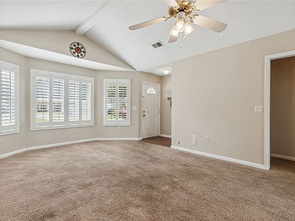 Large lot 76’ lake front view. 3 bed/2 bath home in a cul-de-sac. Nature trail runs along the side of the house 477’ around the tree lined side of the lake owned by the HOA. HOA fees are $453 per year with access to pool, lake, fishing and a shady playground area. The home features a vaulted ceiling in the living room and all windows have plantation shutters. Newer sliding door from dining room to patio. Galley kitchen with walk in pantry/laundry. Split floor plan with primary bedroom on the back of the home with attach full bath and walk in closet. 2 other bedrooms on the front of the house with a full bath and 2 linen closets. 1 car garage with automatic garage door opener, peg board on the walls, shelving, cabinets and work bench. Low maintenance vinyl siding and fenced back yard. I made new friends of a duck family while taking photos. The back of the home faces north northwest providing a cooler breeze and shade from the hot afternoon sun. Your new home is waiting for you. Schedule a showing today ***Seller offering $10,000 for Buyer concessions with acceptable offer ***