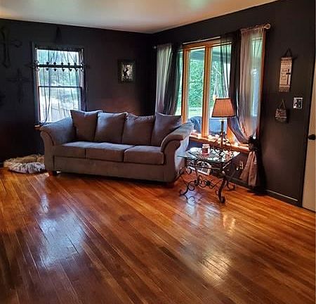 Welcome to this adorable ranch with spacious covered porches on the back and front of the house! There is plenty of room to sit out and enjoy the large, beautiful park like yard! Part of the yard is fenced in with a privacy fence. Hardwood floors in the living room and 1 bedroom! Kitchen/dining room combo with hardwood cabinets in the kitchen. New sliding door leading to back porch. Remodeled bathroom and newer hot water tank. Fully updated electrical system with 200 amp box. Large laundry room. Many beautiful build-ins and a bar in the finished area of the basement. New garage doors on the detached, 2 car garage. A beautiful lot and charming home awaiting its new family!
