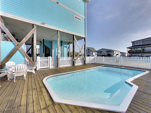 Beach lovers as well as boating and fishing enthusiasts will love this canal front home! The beach access is very close by. This inverted 4 bedroom 3 1/2 bath home was built in 2014. It is one of very few homes with a private pool to enjoy after a long day on the boat or at the beach. There is an aluminum dock and fish cleaning station at this home. A master suite with private sitting area on second floor. First floor has three bedrooms and a sitting area as well. Home has been meticulously maintained! This home has a great rental history .