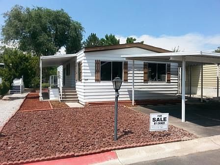 New Appliances! New Carpet! New Floors! New Paint! New Bathrooms! NEW NEW NEW! This home is located in the lovely Lucky Lane Park and has been completely re-done! 2 bedroom and 2 full bathrooms. It Offers a Very Large Family Room as well as a Large Dining Room off of the kitchen. The Master bathroom includes a stall shower and a Tub! All Appliances and washer + Dryer are to stay with the home as well! This home backs to a greenbelt that has three frisbee golf holes! Its like having your own huge grass back yard! You have plenty of storage with the shed that is in back and a lovely patio for those who like to have shaded patio space for friends, BBQ or whatever else! Not only that but there is an area for a Garden in the back as well! The park offers a community center with a Large Party area, Pool Table, shuffle board, big screen T.V. and Kitchen for those b-day parties! This home will NOT last! Get in to see quickly! For Questions and to make an offer please call Russ (702)-271-9513 Park must approve all owners before purchasing.