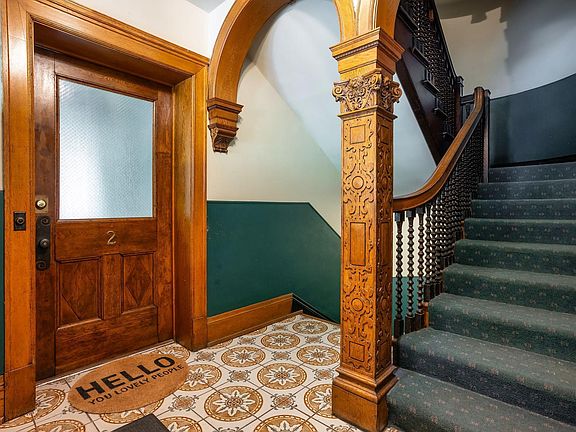 Historic character meets modern comfort in this Main floor unit with 1700 square feet! Step into timeless elegance in this beautifully updated 3-bedroom, 2-bath Pullman condo, originally built in the 1898 and thoughtfully restored to blend classic Italian-style charm with modern convenience. Located in one of St. Paul's most historic neighborhoods, this home is a true architectural gem. Inside, you'll find a remodeled kitchen with contemporary finishes that complement the original design, along with two fully updated baths, including one featuring a vintage clawfoot tub. Beautiful original hardwood floors throughout , pocket doors, exquisite woodwork, and a decorative fireplace. A striking banister staircase leads to the rooftop terrace for additional outdoor living space along with breaktaking views of the St. Paul skyline. Whether you're enjoying a quiet evening or entertaining guests, this space offers unmatched ambiance.