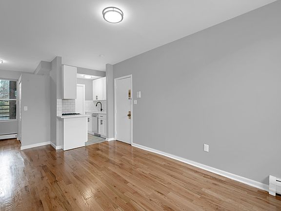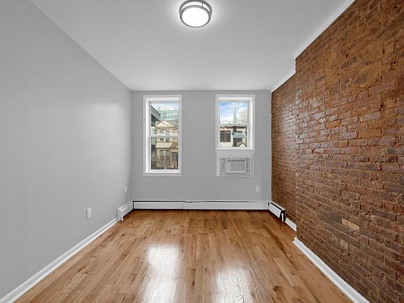 NO BROKERS FEES! Studio Apartment located 1 Block from the Journal Square Path Station and Transportation Center. One flight up. Ac Window Unit installed in the unit. Fully Renovated Bathroom Space. Exposed Brick throughout. Laundry in the building. Heat and Water included in the rent. 1.5 Month Security Deposit. Pet fee $50/Month Owner pays for Water and Heat. Tenant pays Electric and Cooking Gas. 1.5 Month security deposit.
