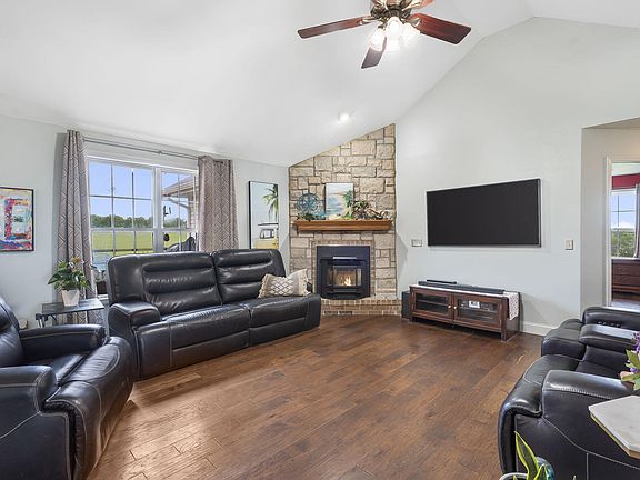 Looking for the perfect mix of country charm and city convenience? This 4-bedroom, 3-bathroom gem sitting on 3 beautiful acres in the highly sought-after Ozark school district is calling your name! With tons of space to spread out and plenty of peace and quiet, you'll love how close you are to all the action--whether that's shopping, dining, or quick trips to Branson or Springfield! Inside, you'll find a cozy living room with a pellet stove, gorgeous hardwood floors, and a brand-new kitchen with sleek granite countertops and a pantry. The master suite is like a mini retreat with dual walk-in closets, a walk-in shower, and a jetted tub for ultimate relaxation. The main floor also has two more spacious bedrooms and another full bath. The laundry room is also located on the main level. Ready for even more room? Head downstairs to the fully finished walk-out basement, where you'll find another living area perfect for game night or a man cave, plus an additional bedroom and full bath. Movie buffs will LOVE the theater room, complete with recliners, a projector, and a screen! There's also a versatile Bonus room that's currently a workout space but can easily transform into a hobby room, home office or John Deere Room. Step outside onto the back porch and soak in the stunning countryside views--whether it's a vibrant sunrise or a breathtaking sunset, it's the perfect backdrop for every moment. With no HOA, you can make this outdoor space truly your own--bring your horses, start a garden, or build that workshop you've always dreamed of! And the best part? You're just minutes from Highway 65 for quick trips to anywhere you need to go! Come see for yourself why this home is such a rare find! Look in pictures for floorplan!