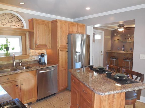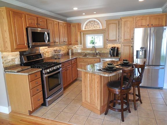 You must see this impeccably maintained home, offering a beautiful setting on a .75 acre lot located within walking distance to downtown! The brick and vinyl exterior is maintenance free, newer roof, chimney re-built with stone exterior, and new paver walk ways lead to new entries with composite decking. Inside you will find a newer kitchen with granite counters, tile flooring, stainless steel appliances, recessed lights, crown molding, tile back splash and center island. It opens to a large dining room with fireplace and hardwood floors. There is a spacious living room with a free-standing gas stove, and a remodeled bath with granite and tile. The lower level offers additional living space and fully updated mechanical systems...newer, high efficiency boiler, updated 200 amp panel with whole house generator. Rear decks lead to a covered hot tub, pool, expansive rear yard and 16X20 shed with power and water.