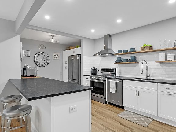 A PERFECT TEN JUST 1/2 MILE FROM DOWNTOWN ATLANTIC HIGHLANDS! Situated in the desirable Leonardo section of Middletown Twp, this 3 Bdrm, 2 Bath home is simply stunning. Enter to find wide open floor plan w/ white oak floors throughout. Spacious kitchen is loaded with upgrades like leathered granite ctrs, white shaker cabs, SS appl, subway tile backsplash & breakfast bar! Hall bath features ceramic floors & subway tile tub surround. FR is complete w/ wood burning fireplace. MBR features en-suite bath w/ ceramic floors, walk in shower w/ glass sliding doors, & large WIC. Other features include laundry room, new roof, HVAC, & water heater. Tranquil backyard is complete w/ large deck & two storage sheds. Located close to ferry/bus to NYC, shops, restaurants, & area beaches.
