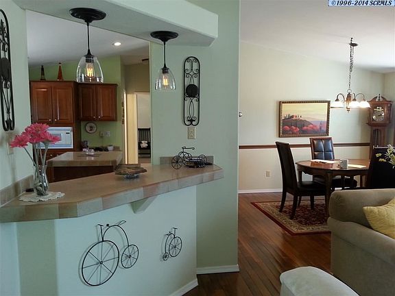 Spiffy clean and bright! As soon as you drive up you'll see why "pride of ownership" adds to this property on the market. Lovely 3 Bedroom, 2 Bath with views of the gorgeous sunrise and sunsets! Just unimaginable. Four ceiling fans, Brazilian hardwood floors, ceramic tile in Kitchen and Baths, light dimmers in each room, beautiful window coverings throughout. A list of what stays with the property are: cement bench, waterfall, quail, weather vane, 3 bar stools and 2 large throw rugs. It's a must to see.