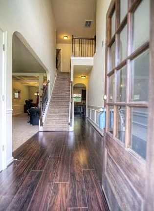 Impressive 4-sided brick home has striking curb-appeal. Space&upgrades galore! Step inside to a 2-story foyer,rich dark,wide plank hardwood floors,extensive trim and arched entryways. Formal living&dining room combo has columns and coffered ceiling. Perfect home office OR 6th main floor bedroom w/full bath. Open concept dine-in chef's kitchen w/granite counters,island&stainless appliances. Sunken fireside family room w/stone hearth. Covered grilling patio. Massive owner's retreat w/sitting area walk-in closet&spa bath PLUS 4 bedrooms&2 baths upstairs. Fast,easy commute!