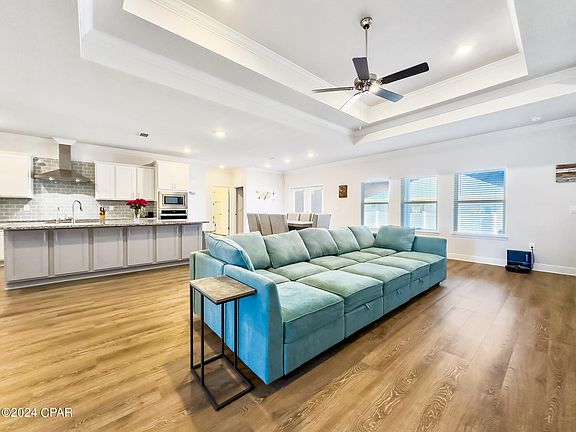 CURRENTLY UNDER CONTRACT, SELLER WILL CONSIDER BACKUP OFFERS This one's a stunner! You will feel amazed upon entering this 5 BR 3 Bath home with an open floor plan. It has many CUSTOM upgrades, including crown molding, raised ceilings and trey layers in multiple rooms. This is paired with over 3100 square feet of living area and a separate contemporary office that provide a comfortable and spacious atmosphere perfect for entertaining guests or relaxing with your family. Granite countertops, subway tile, custom cabinets, built in oven and microwave, and a large amount of countertop space make this a dream kitchen. The master suite will make you fall in love with this home. It features granite with double vanities, walk-in tile shower, garden tub, and a oversized walk-in master closet that is beautifully done with custom shelving and organization system. The covered patio is a great place to unwind, or work in the large fenced backyard. This home is nestled within a gated community and is walking distance to a park and community area the whole family can enjoy. It is a short drive to a multitude of shops and restaurants and a short drive to Tyndall Air Force Base. This is a home you absolutely must see to appreciate! Don't miss the opportunity. Call your favorite realtor today to schedule a private showing.