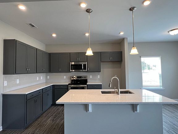 • Double Vanity, Eat-in Kitchen, Entrance Foyer, High Ceilings, Pantry, Master Downstairs, Quartz Counters, Smooth Ceilings, Walk-In Closet(s), Walk-In Shower, Water Closet