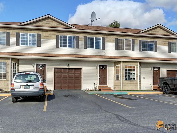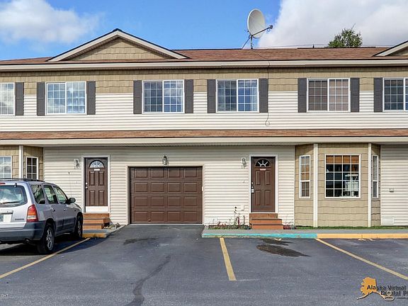 Southern Exposure Home Provides for Sunny and Bright Living, in a Great Location. Close to JBER, Shopping, Schools & Recreation.2BR Townhome w/Master Suites on Both Levels.Kitchen has Upgraded Cabinets w/Pantry, SS Appliances, Breakfast Island and Hardwood Floors! Private Garage w/ Storage, and a Private, Fenced Backyard. No Need to Shovel Your Car Off Here. All new carpet and extremely clean.
