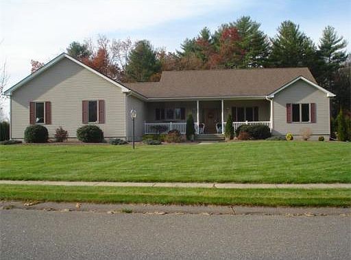 Big price reduction on this executive Ranch home on popular Maximilian Drive nestled on one of the nicest cul de sac neighborhoods in Granby. This home is in wonderful showroom condition with many upgrades and extras that are not featured in many homes built today. Terrific kitchen with granite countertops and beamed ceiling. Formal Dining Room with sliding door to the back yard, which is well groomed, landscaped and includes a stone patio and built in barbeque for outdoor entertaining. Great Room with stone hearth from floor to ceiling with pellet stove, that leads into the Sunroom that overlooks the back yard and absorbs afternoon sun. Master suite with two closets, oversize bathroom with jetted tub along with a sliding door that leads to a separate glass enclosed porch that overlooks the stone patio. Remodeled bathroom with laundry room, and a finished basement. Enclosed front porch dresses up the front of this home. This home abuts the woods, Great Granby Schools.