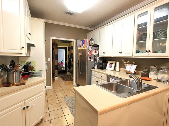 Our home is 3 bedroom , 2 bath - split floor plan and double garage. We have a large master suite with hardwood floors, updated bath with tile walk-in shower, granite, dual vanity and his/her closets. The living, foyer, and dining is all open with built-ins, fireplace, and hardwood floors and 9ft ceilings. We have a covered back porch, large fenced backyard and storage building, with electricity.