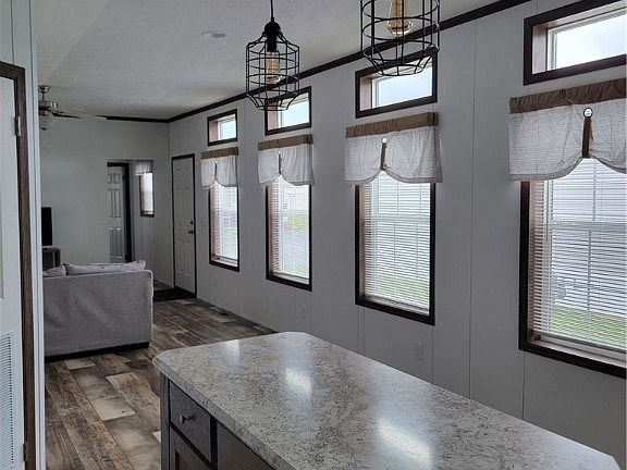 - Ceiling Fan(s), Eat-in Kitchen, Kitchen Island, Other, See Remarks, Window Treatments, Bedroom on Main Level, Bath in Primary Bedroom
