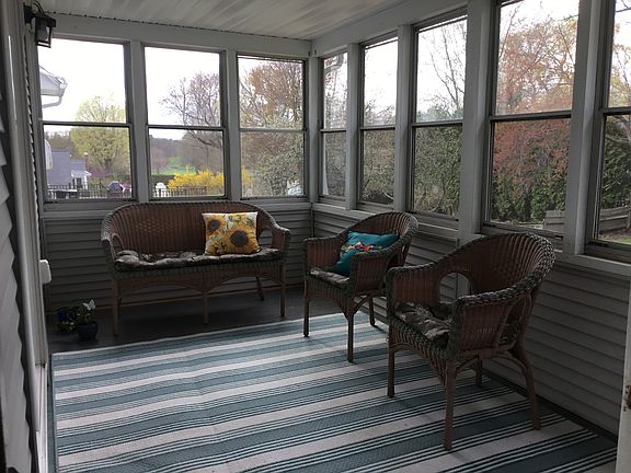 -Close to the center and shops and biking trail -Living Room with fireplace -Updated Kitchen with granite countertops and island -Stainless steel appliances and lots of cabinet space -Open kitchen and dining space -3 season Porch/ Sunroom off Dining Room overlooking a large private backyard -Open "breezeway" between house and attached garage. -Two Bedrooms on first floor -Three additional upstairs Bedrooms -First and Second floor Full Updated Baths -Family Room with fireplace in basement for entertaining/ play area and unfinished area with storage space and laundry area with hookups. -Hardwood floors throughout first floor -Carpeting on second floor -Central air conditioning -Gas heating (forced hot air) -Two car attached garage