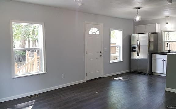 Celebrate the holidays in this Charming, lovingly restored home. Brand new Roof, Windows, Siding, HVAC, Plumbing, Electric, Stainless Steel Appliances, gorgeous dark laminate floors, front porch, brand new water line from the house to the curb. Duke Energy has even connected all new power lines from the street. New side porch leads to partially fenced yard for additional privacy. Remember, your property continues behind that fence as you now own approx. half an acre of land. Gravel driveway gives you the freedom to turn around and never back out onto the street. Plenty of parking too. Walking distance to downtown. Highly Sought-After Clover School District. Zoned R-7 to allow new homeowner to build on back acreage. The possibilities are unlimited. PLEASE NOTE: While currently not on the market, two properties on both sides of this home (113 and 201 Mobley) are being completely restored by the same team. What a great time to buy in this quaint neighborhood of Clover.
