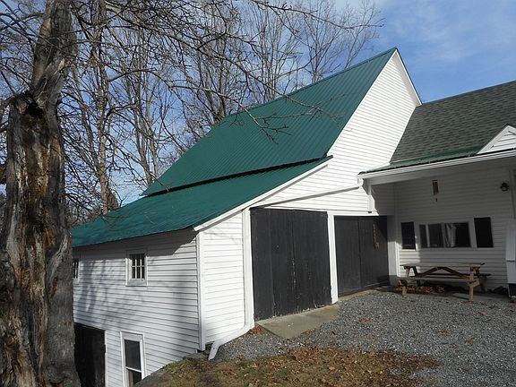 3 bedrooms, 1700 sq ft of heated living space, plus wrap-around three-season porch, full concrete floor basement, and large (2000 sq ft) attached barn. Large open yard, GREAT for KIDS!! New furnace installed Oct 2017. Oil-fired steam heat with old-fashioned claw-foot radiators that have been completely refurbished. New barn roof, Oct 2017. Approx 2 acres, with more than an acre of usable space, including a half-acre fenced pasture. Beautiful gardens: 2 large vegetable gardens and multiple well-established flower gardens. Even a large chicken coop. Two woodstoves. Vermont castings hearth-style Franklin stove with glass doors in the living room. Vermont castings log stove with glass door in kitchen. Views of White mtns. Nature lover's delight. This home is completely surrounded by hundreds of acres of conserved land, yet you can walk to Newbury Village on paths and sidewalks all the way. It lies adjacent to Harkdale Farm and Montebello Forest (Newbury Village Forest) as well as conserved lands along the lower stretch of Romance Creek (Harriman Brook). Quality cordless window blinds in every window.