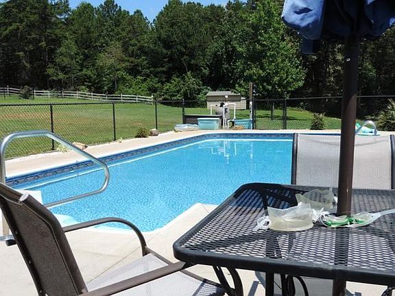 117 Morgan Rd offers 3 bed 2.5 baths with a large specialty room currently used as a rec room overlooking the backyard and pool. You could use it as a keeping room or exercise /office area. The home is a split bedroom plan with real hardwood floors flowing through the home except for the carpeted bedrooms and tiled bathrooms. this home is complete with a sizable kitchen with plenty of cabinets and counter space. Breakfast room faces the rear of the home while the formal dining room faces the front. The living room has vaulted ceilings and gas fireplace. The master bedroom has trey ceilings and a large master bath with double sinks, walk-in closet, separate walk-in shower and a jetted tub. The two other bedrooms on the other side of the home share a large full jack and jill bath. Outside you will find a level yard, open Air deck and a relaxing pool.