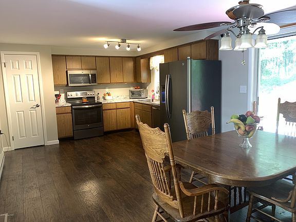 HIGHEST AND BEST BY 12 NOON 9/15. BEAUTIFULLY Remodeled Interior. Gorgeous Acre lot is mostly cleared but wooded area behind the house offers some privacy and is a nice place to relax by the fire pit. Paved driveway leads to 2 car garage. Pretty and practical shed. Nice rear deck. 3 bedroom, 2 bath ranch has a fireplace in livingroom- new laminate flooring- freshly painted. 3 heating options for optimal savings- coal stoker stove, Propane heater and electric baseboard. Water treatment system insures you best quality water. Plumbed for 3rd bath in basement if you even want to add it. HOA fees are only $180 year and for that you get access to a beautiful olympic size pool, awesome clubhouse you can rent for parties, playground, basketball and tennis courts.