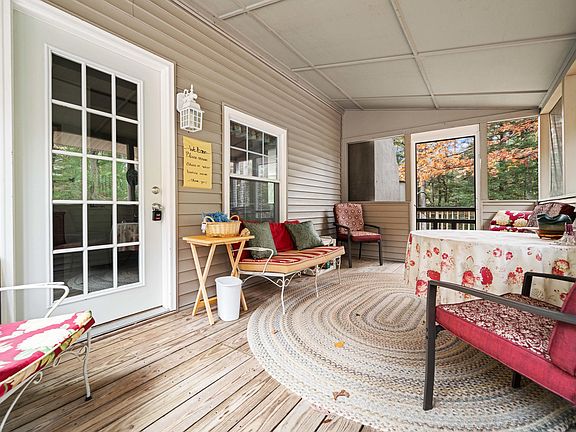Just minutes from the lake! A rewarding escape of a home peacefully situated on a wooded lot. Richly appointed spaces include large gathering areas and screened-in porch to enjoy the view of nature. Vaulted ceilings with exposed beams throughout the home. Brightly appointed kitchen and interior spaces all finished with a neutral decor. You'll appreciate the many community amenities including a private beach, nature trail, boat launch and more. So much to see!