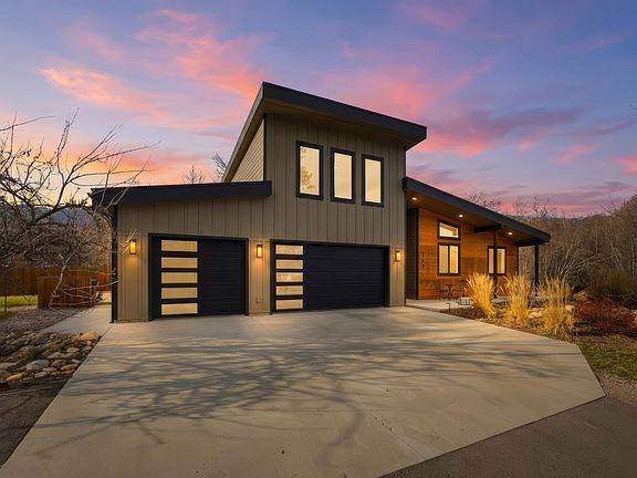 With a warm modern aesthetic, functional floor plan, and superb location, this home is waiting for you to make it yours! Enjoy the impressive vaulted ceilings, gas fireplace and beautifully finished kitchen space. With walls of large windows overlooking a private backyard framed by a trickling brook and trees, it’s easy to feel relaxed in the space. Seek rest in the large primary suite with walk in closet, and an adjacent bathroom boasting a large walk-in shower, soaking tub, and private toilet closet. Three other bedrooms and a full bathroom complete the first level. Head upstairs for a large flex-space, art room, and another ¾ bathroom. A large back covered patio, complete with hot tub, expands your living space into the beautiful outdoors. Fruit trees surround this property and produce throughout the summer and fall. A large attached 3 car garage gives space for vehicles and hobbies. Love where you live, and embrace the mountain modern lifestyle!