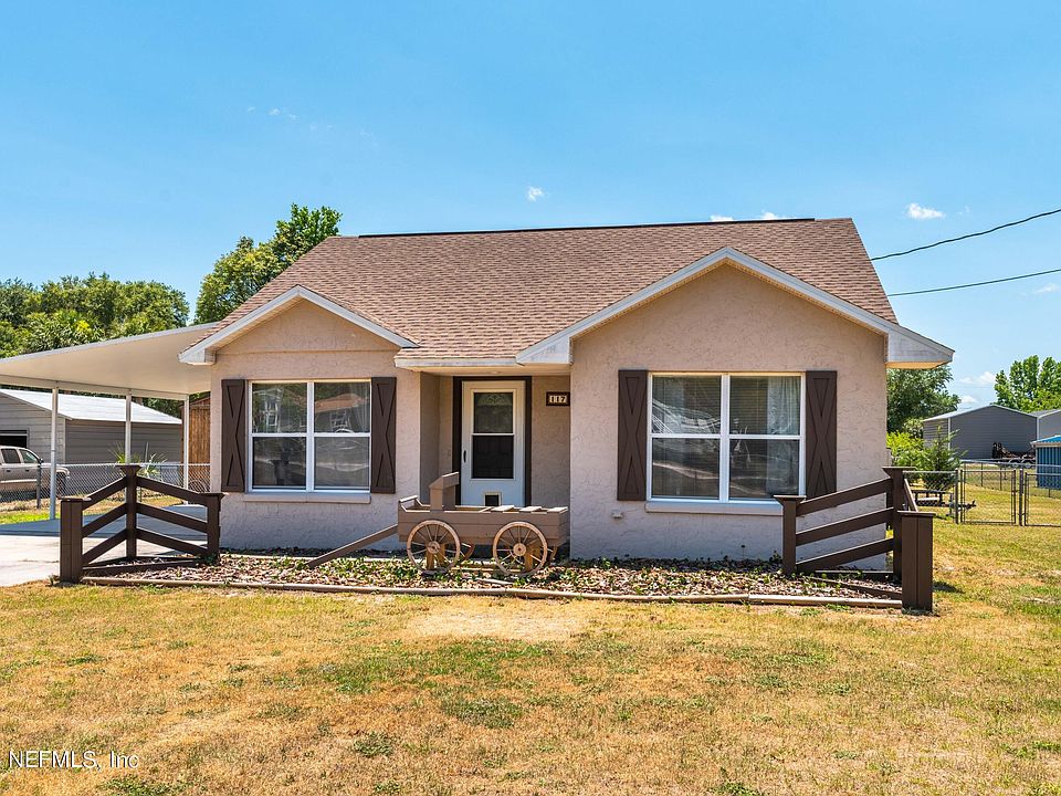 Welcome home! This peaceful 2 bedroom, 1.5 bath sits on a generous .5 acre. The yard is fully fenced, has plenty of storage, a chicken coop, and a large garden. This well maintained, block house is a perfect starter home or for someone who's ready to slow down with low maintenance. This home features a large kitchen/dining combo with a large living room. The fridge, washer, and dryer are all included in the sale. The roof is 3 years old, and the A/c is serviced every 6 months. Don't miss your opportunity for this affordable, block home in a peaceful neighborhood!