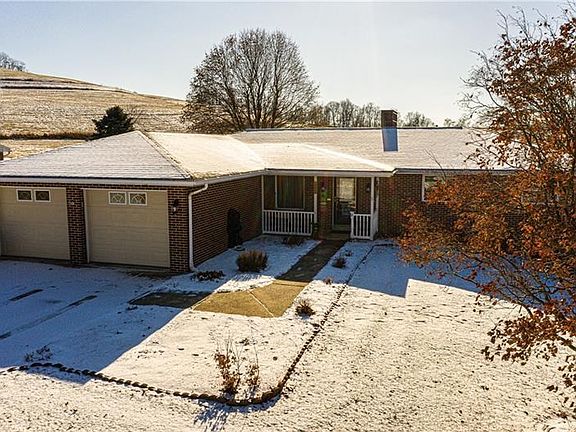 Welcome to this charming 3 bedroom 2 bath brick ranch home offering one level living! The open floor plan features a spacious living room, family room with a gorgeous stone fireplace, fully equipped kitchen eat in kitchen, and a dining room which leads to the bright sun room surrounded by windows. 3 nicely sized bedrooms, updated full bath, and a laundry room finish the first floor. The huge lower level offers an updated full bath, lots of storage, and can easily be converted to additional living space. The serene location offers a level back yard with beautiful views. There are 2 storage sheds, both with electric. Updates include newer roof, furnace, AC, hot water tank, and flooring.