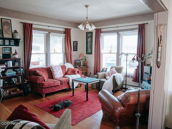 Historic & full of vintage charm for B&B or your own home. Building has been well maintained and has undergone restoration and remodeling over the years with care to keep historic character. Large fenced yard w/ cherry, apple, peach & lilac trees, garden beds and berry bushes. Mountain & inlet views. Versatile property has been successful B&B for decades, originally housed a family w/ 8 kids.
