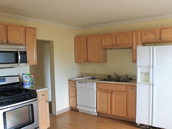 This home has a garage and a carport, with a big yard. Natural gas furnace. Home has 2 bedrooms, living room, kitchen with a large storage pantry, separate laundry room, as well as a storage cellar.
