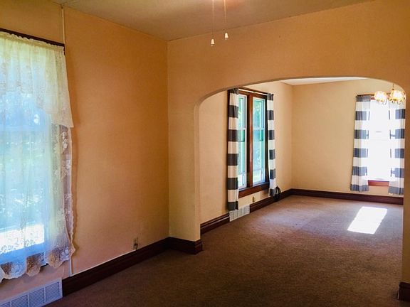 Here is a great older 1 1/2 story home with dormer. Original trim throughout. 2 bedrooms up and 1 downstairs with 1 full bath down. New windows. Living, dining and kitchen are large rooms with 10 ft. ceilings. First floor features a laundry/mud room in the back and a covered porch with swing in the front. The kitchen has a separate pantry, and there is extra storage in the bathroom. Lots of storage in the full length attic upstairs. Carpeted in living room and dining room and most rooms have a fresh coat of paint. Tub was refinished. New flooring in kitchen/pantry/laundry. Alley and side drive access to back entrance at ground level. 1 1/2 car garage. The house has a newer roof and high efficiency furnace with central air. Hot water heater is newer, and all waste and supply lines have been updated. This property is sold as is, has been a rental for 17 years. Easy access to and visable from Commercial Ave. (State Route 2) Home warranty. No money down with USDA financing!