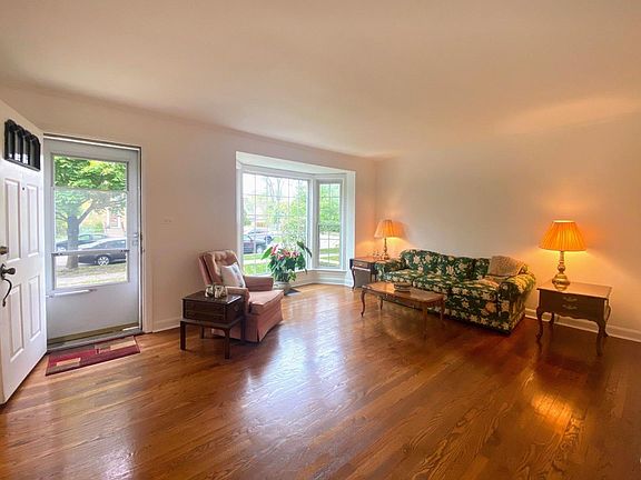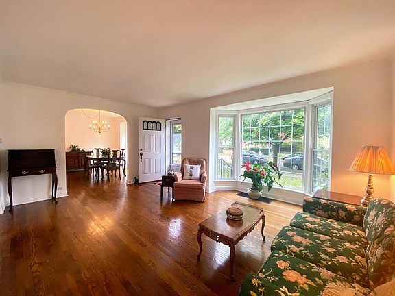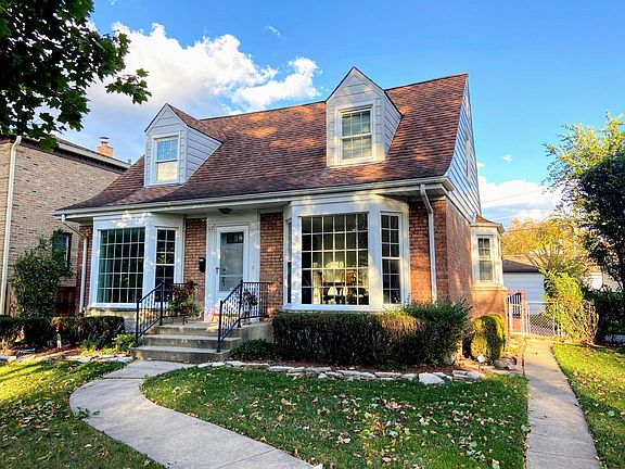 This Cape Cod home is in a great location walking distance to school, town, train, fitness centers & parks! The first floor of this home features four bay windows in the living room, dining room, kitchen, and family room. The kitchen has an eating area and a pass-through window that opens up to the large family room with a beam ceiling and fireplace. There is also a first floor bedroom and full bath. There are two bedrooms upstairs. Large basement has an additional bedroom, full bath, laundry, and plenty of space for storage. The backyard includes a big brick paver patio and a 2 car garage off the alley. Estate Sale. Being sold AS-IS. Convenient location- close to everything!