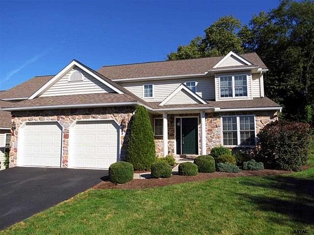 Don't miss this stone/vinyl end unit condo in The Fountains. 3BR 2.5BA home has an open floor plan, lots of light, & backs up to the woods. Kit w/brfast bar & all appls. Lg LR/DR combo-has a pass thru opening from Kit, & cath/vaulted ceiling w/fan-opens to wood deck. 1st Fl MBR suite. Great staircase to Loft-overlooks LR/DR-would make great study or FR. 2car gar.