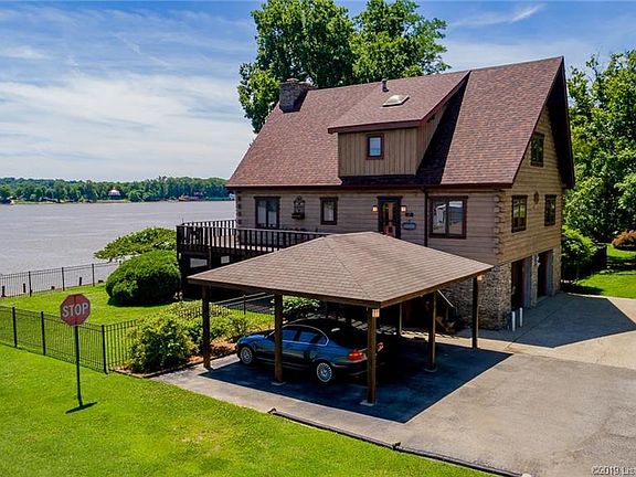 Wake up every morning to an amazing sunrise on the OHIO RIVER. This 2 story home is located ON THE WATER at the end of a semi- private road. It's lot is one of the largest lots on the water in Utica. You will want to spend most of your time enjoying the OUTDOORS on your spacious WRAP AROUND PORCH with beautiful RIVER VIEWS! Or by the in-ground pool or spending the weekends on one of the TWO BOAT DOCKS. This beautiful log cabin style 3-bedroom, 2.5 bath is a must see! When you enter, you instantly notice the abundance of natural light provided by the large 42ft. VAULTED CEILINGS and a gorgeous wall of OVERSIZED WINDOWS looking out over the Ohio River. The grand scale of rooms and the variety of living spaces offers something for everyone. You will love to cook when you have views of the River. Call today for your private showing!
