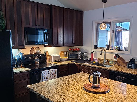 - Fireplace features: wood stove