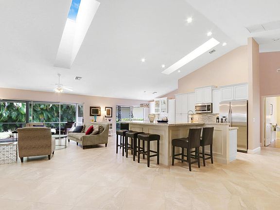 Home has been completely redone from top to bottom. Unique open floor plan great for entertaining. Spanish porcelain tiled floors throughout. Custom kitchen cabinets with stainless appliances. Loads of cabinet space. Brazilian Granite counters. Wine cooler. Volume ceilings with impact glass skylights. Lots of light. Newly renovated bathrooms. Roof replaced in 2012. Large screened in porch. House is a real gem in move-in condition.