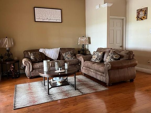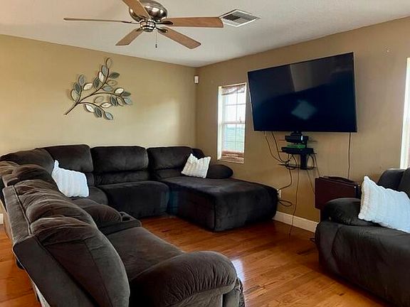 Don't miss this beautiful 3bed/2bath home with a 2 car detached garage. This home features an open floor plan living area with Kitchen, family room and breakfast area with french doors overlooking large screened in patio off back of home. Split floor plan with large master bedroom and walk-in closet. Spacious master bath with dual sinks, spa tub and separate walk-in shower. Nice wood flooring through out home with vinyl flooring in bedrooms. New A/C unit was installed in 2018. Washer and Dryer are included.