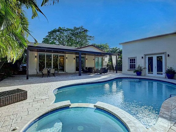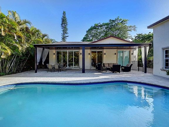 Discover this one-of-a-kind, fully furnished resort-style home in East Boca Ratonan exceptional custom rebuild on an oversized lot featuring 6 bedrooms and 4 full baths, including two primary suites on the main level and a loft upstairs. Designed for comfort and sophistication, the home showcases 11-foot ceilings, LED lighting, impact windows, a heated pool and spa, and a spacious covered patio surrounded by lush Eureka Palms for ultimate privacy. Modern upgrades include PVC plumbing, a new kitchen water filtration system, iPhone-enabled security cameras, central vacuum, and a 3-zone A/C system. The solid block and concrete construction ensure quality and durability throughout. Perfect for both relaxation and entertaining, this residence offers the feel of a private resort with every convenience close at hand. Minutes from the beach, downtown Boca, Mizner Park, restaurants, shops, and major highways. Available for annual or seasonal rental; garage not included.